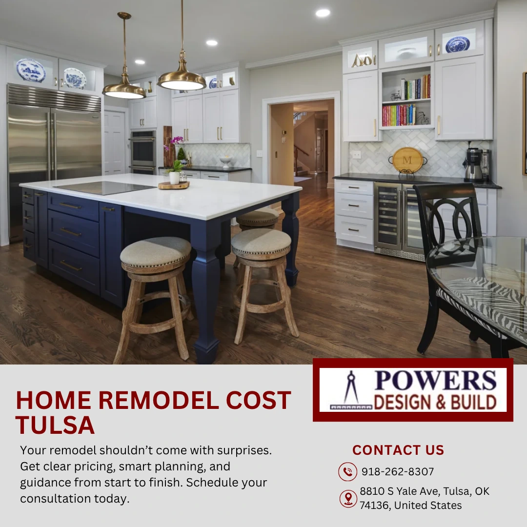 When you’re ready to take the next step, working with the right team makes all the difference. Powers Design & Build brings experience, transparency, and craftsmanship to every project, helping Tulsa homeowners turn ideas into beautifully finished spaces. For those researching ‘home remodel cost Tulsa’, our team provides clear guidance and realistic expectations to help you plan with confidence.